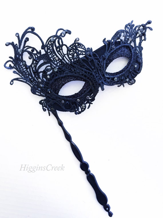 Luxury Masquerade Mask Women Handheld Stick Mask Black Etsy Hong Kong